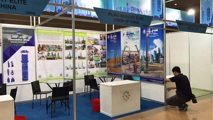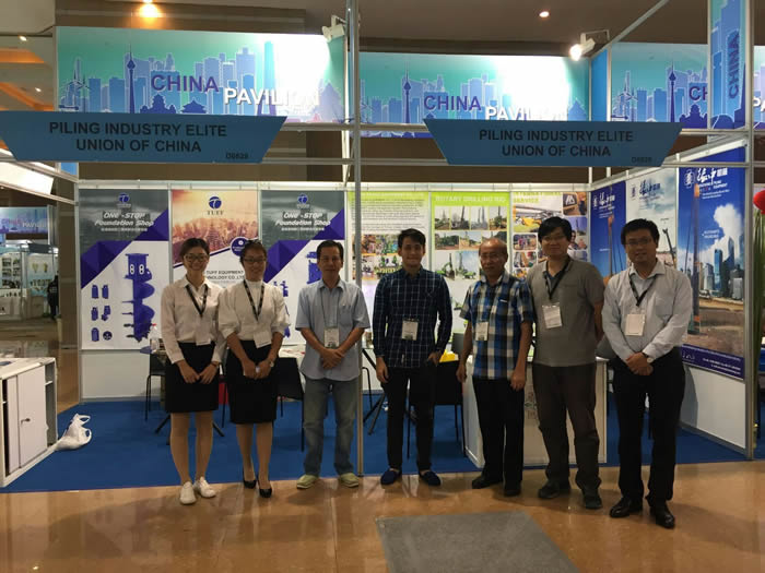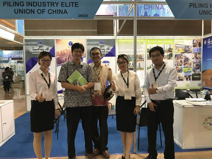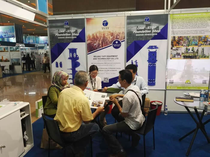 2017年9月11-16日,應公司外貿業務拓展的需求,北京達夫與樁工陸英會成員江蘇泰信,浙江振中聯合參加了兩年一屆的印尼國際工程機械展。在本屆展會上,北京達夫攜帶.新的鉆具、鉆齒、套管、鉆桿等資料,為客戶展示.新的產品設備。